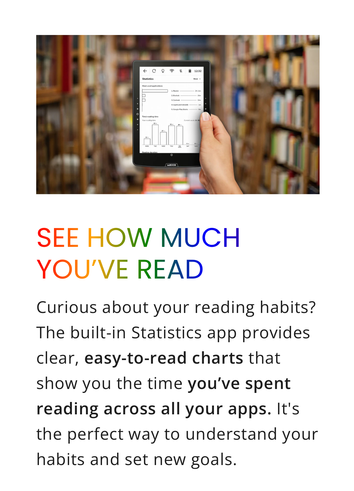 π Long Battery Life β Optimized for days of reading on a single charge.