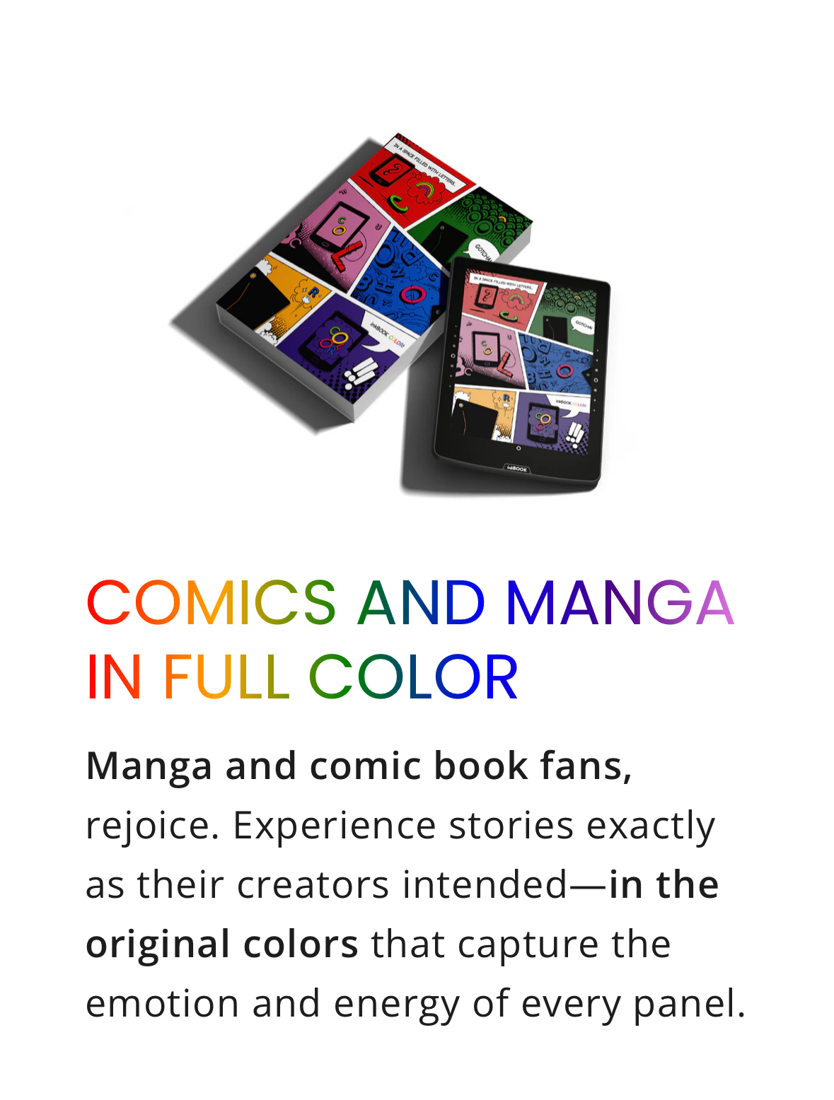 π Color E-Ink Display β Paper-like texture with vivid color support, perfect for manga, comics, and documents.