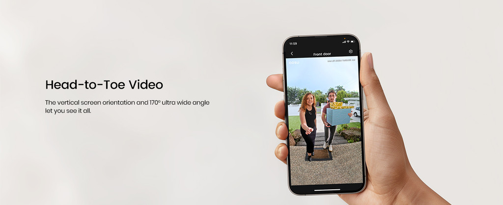 – Tall 1:1 aspect ratio lets you see visitors from head to toe and packages on the ground.
