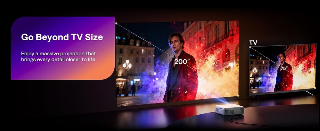 – Perfect for bedrooms, living rooms, or backyard movie nights.