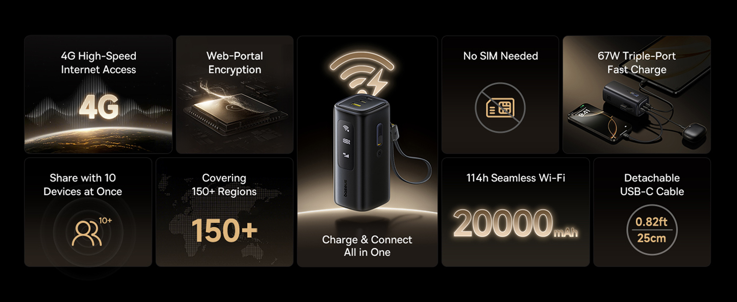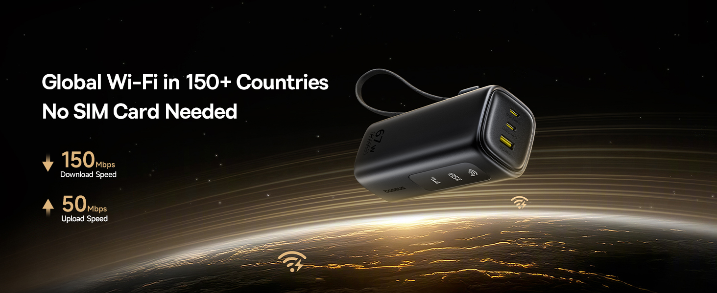 Baseus EnerGeek GX11 4G LTE Mobile Hotspot 20000mAh 67W Power Bank, Portable MiFi WiFi Travel 150+ Countries, No SIM, Worldwide Router