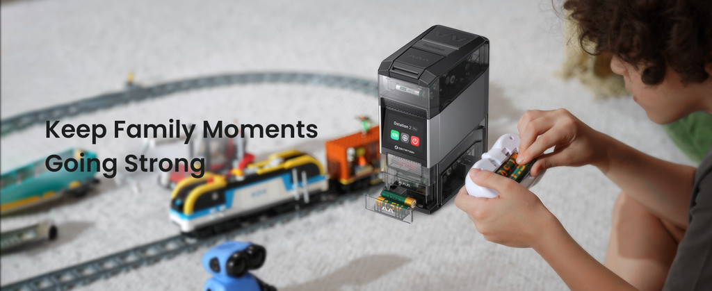 Ostation 2, 3-in-1 Smart Battery Charger AA AAA Rechargeable NiMH Li-ion App Control, Storage, bms (Batt excl.)