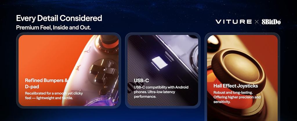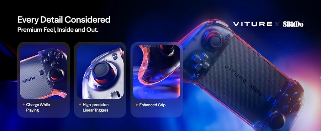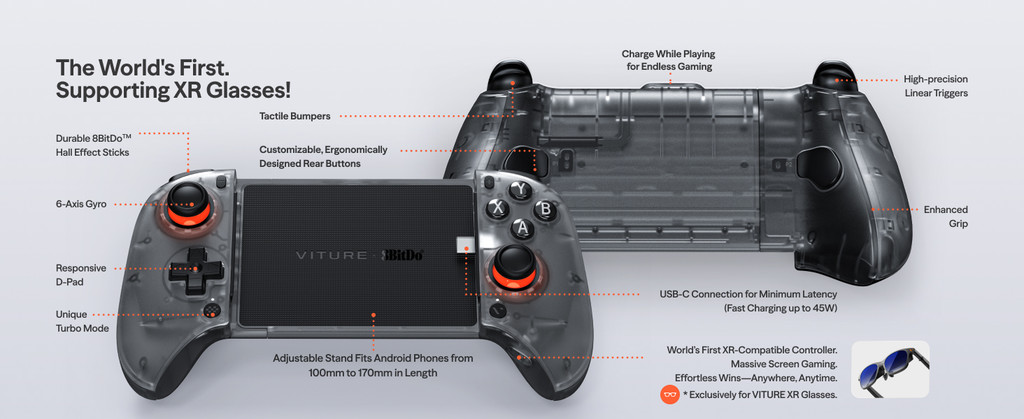 VITURE 8BitDo Ultimate Mobile Gaming Controller for XR Glasses USB-C Min Latency Hall Effect Sticks Charge While Playing