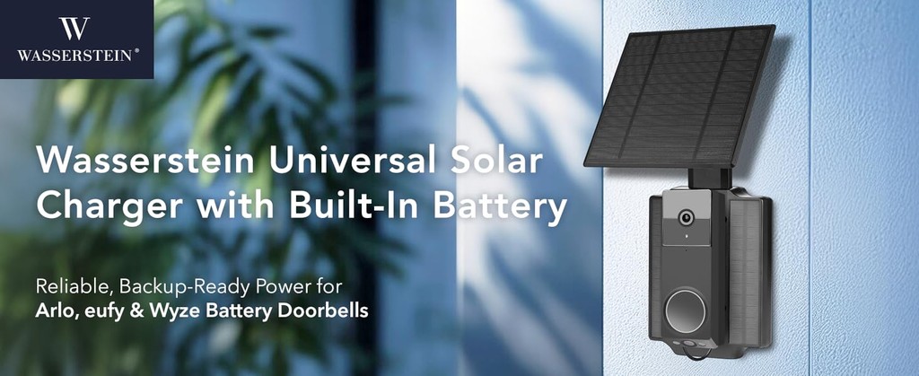 Wasserstein Solar Charger wBuilt-in Battery 2500mah, WYZE Wireless Duo Cam, eufy E340/C30/C31, Arlo Battery 2K (2nd Gen)