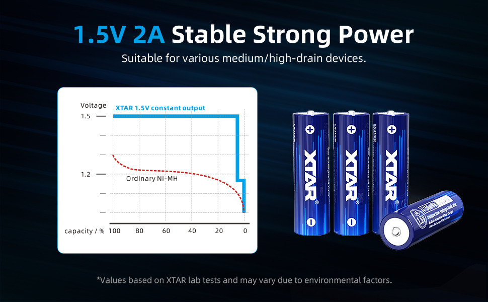 XTAR 4150mWh (2500mAh) 1.5V AA Rechargeable Batteries: Li-ion, Toy Cars Toothbrush