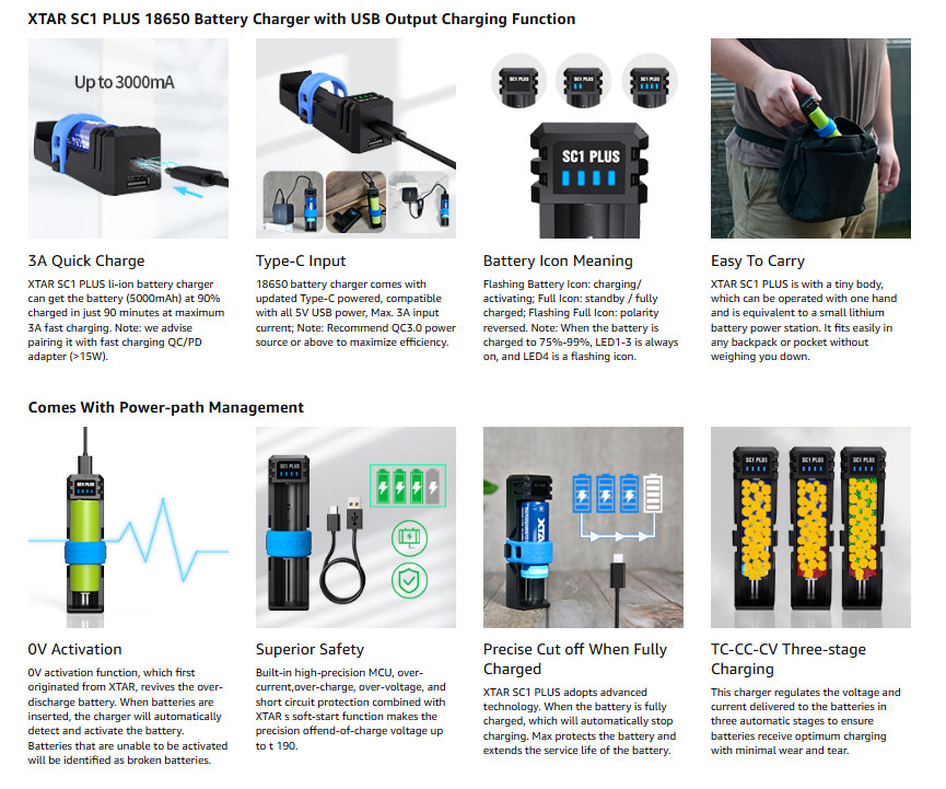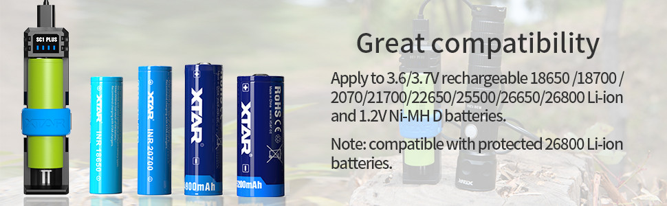 XTAR Battery Charger SC1 Plus 18650 Power Bank Fast Charger for Rechargeable Li-ion 18650 21700 26800 and 1.2V Ni-MH D